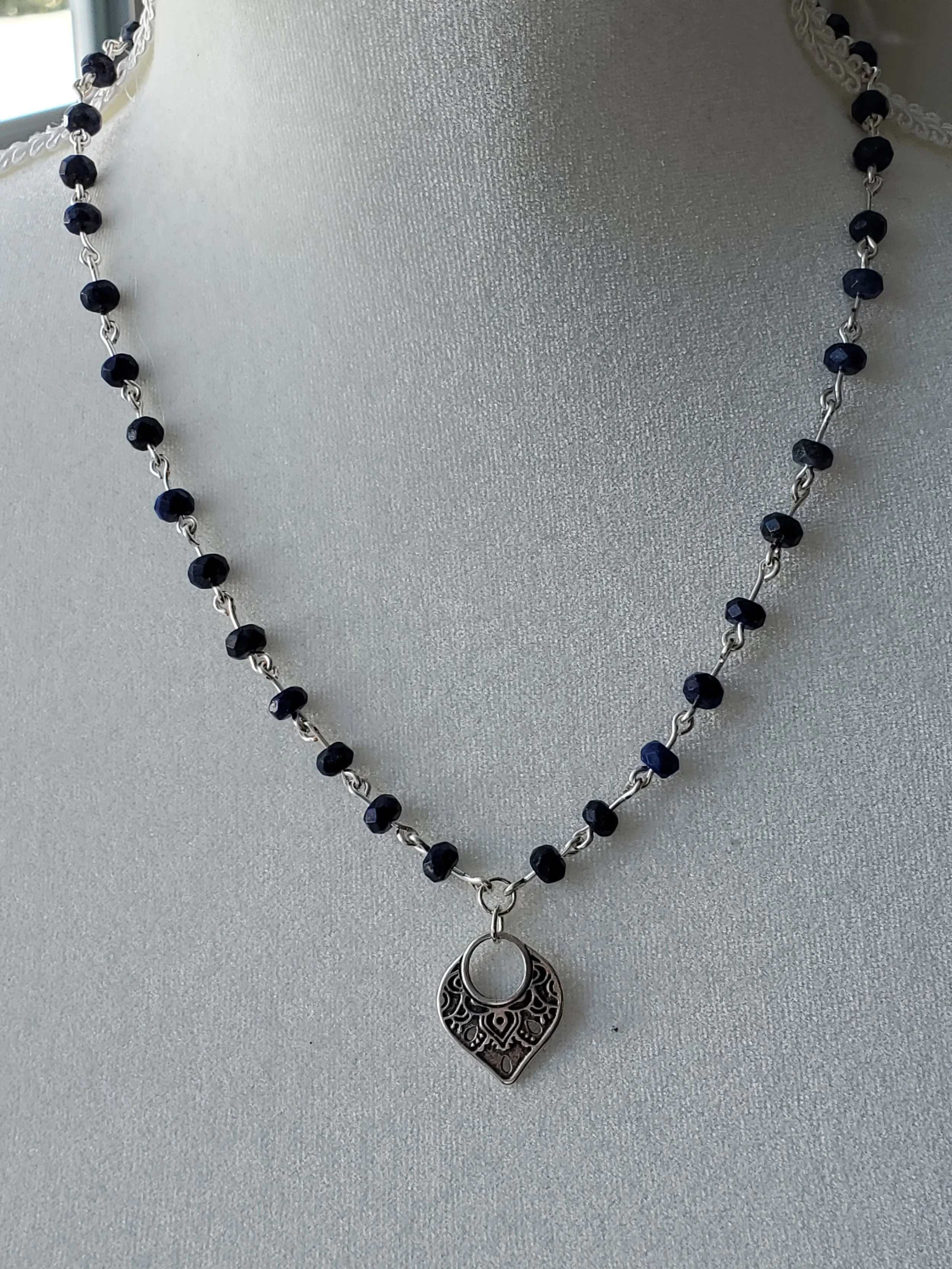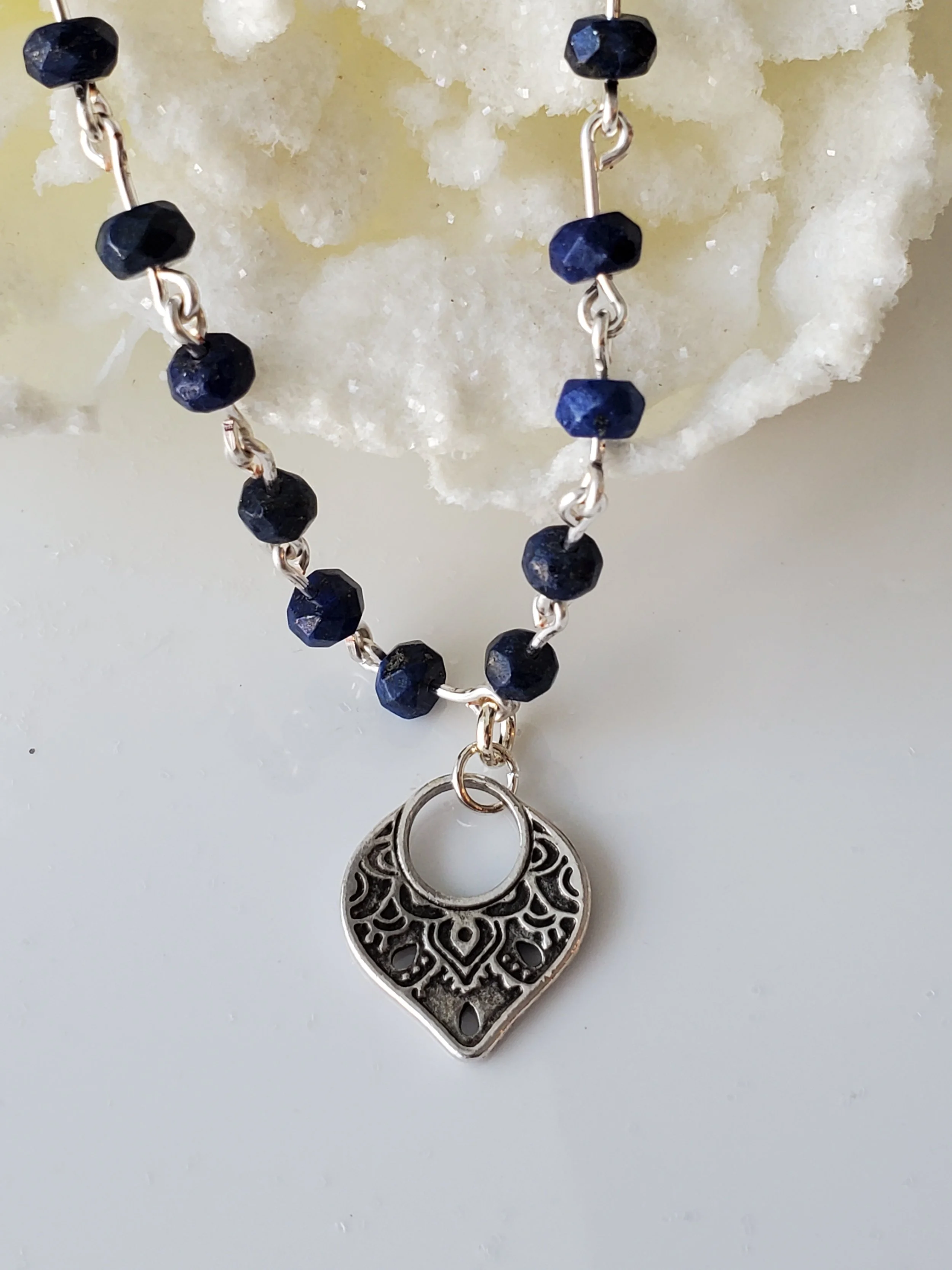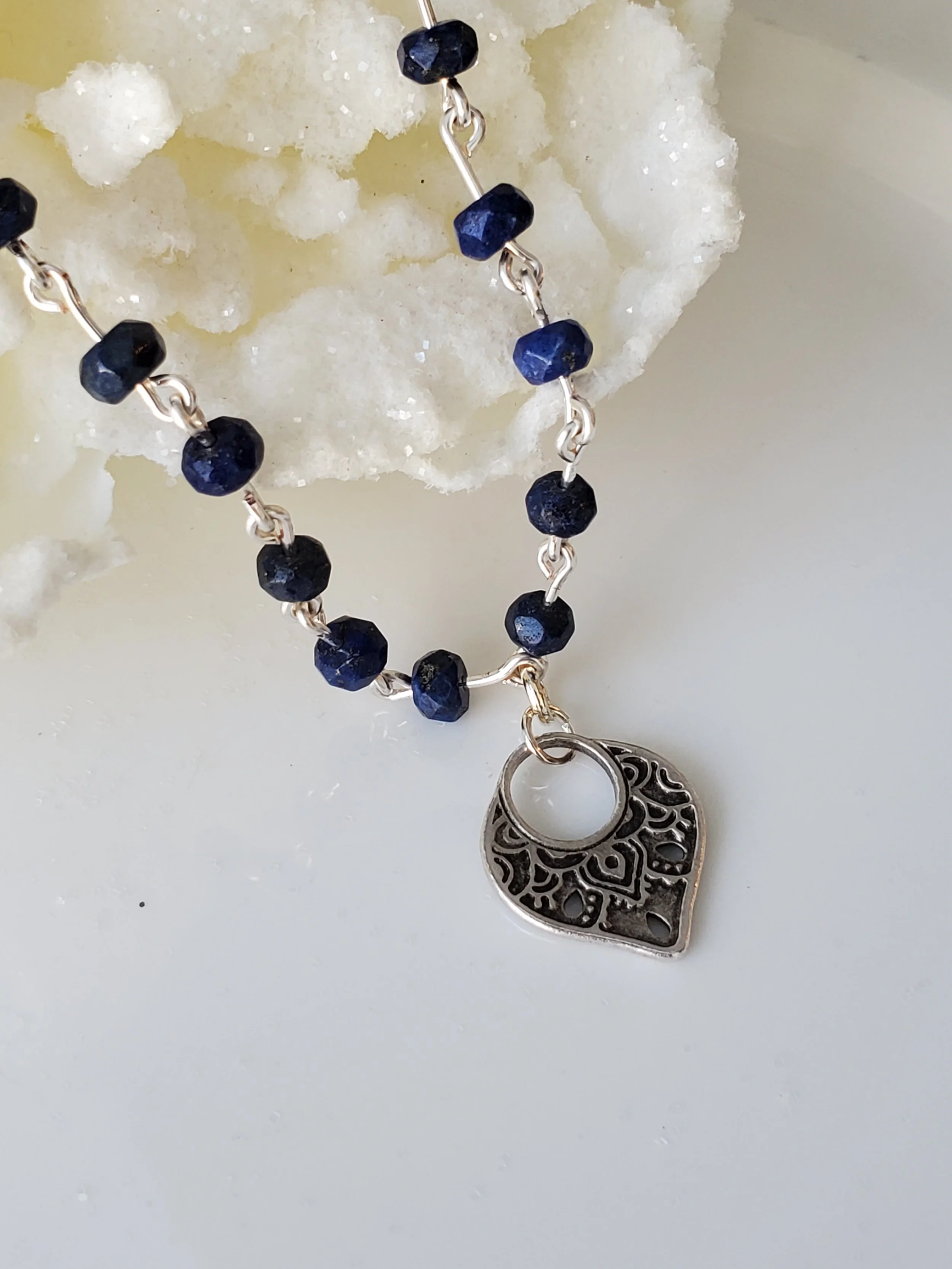 Image 1 of 4 Image 2 of 4 Image 3 of 4 Image 4 of 4 Jolie *NEW* $28.00 Blue lapis on silver plated chain with heart shape boho style pendant. 18”L Add To Cart Added! Blue lapis on silver plated chain with heart shape boho style pendant. 18”L