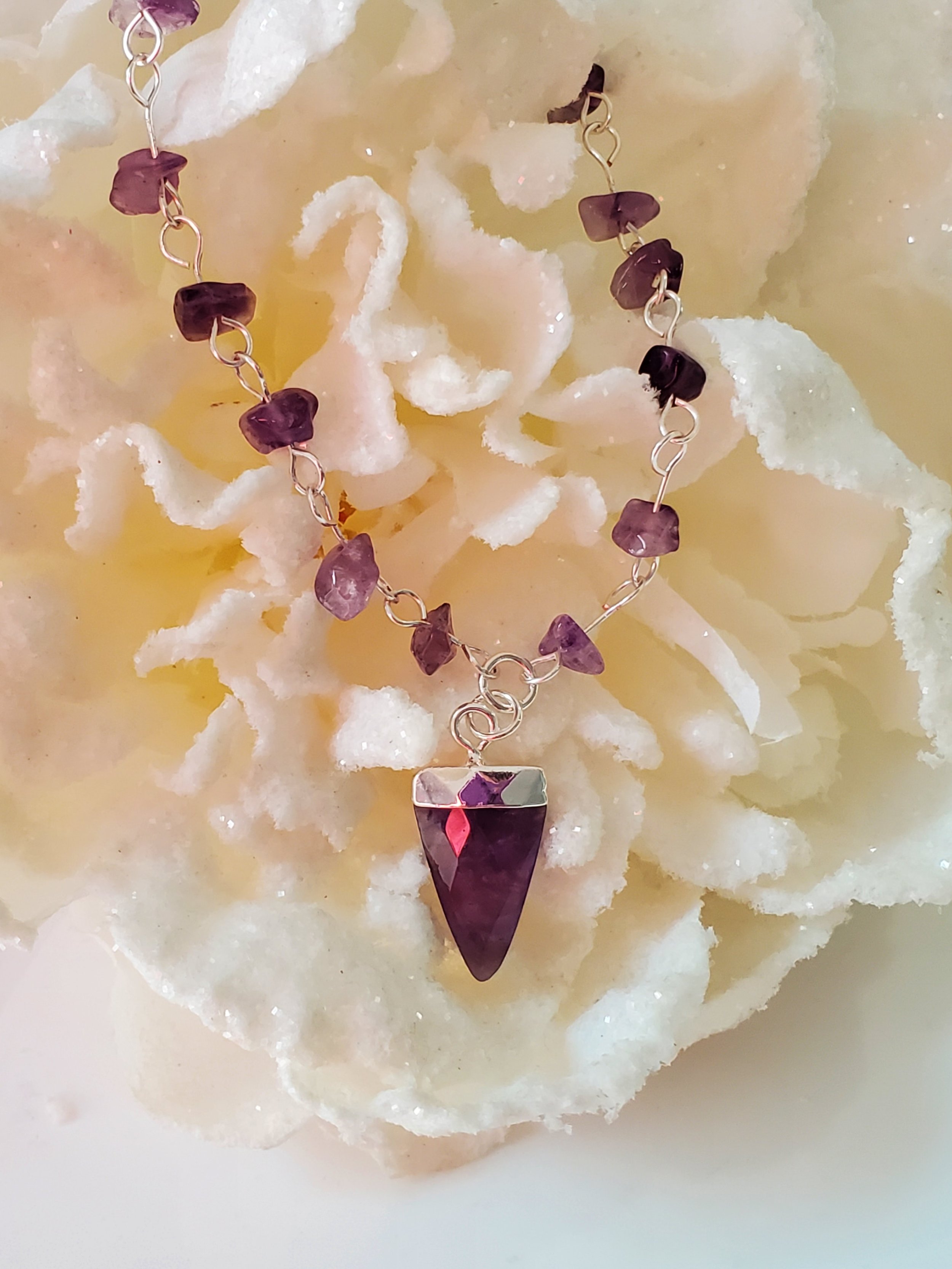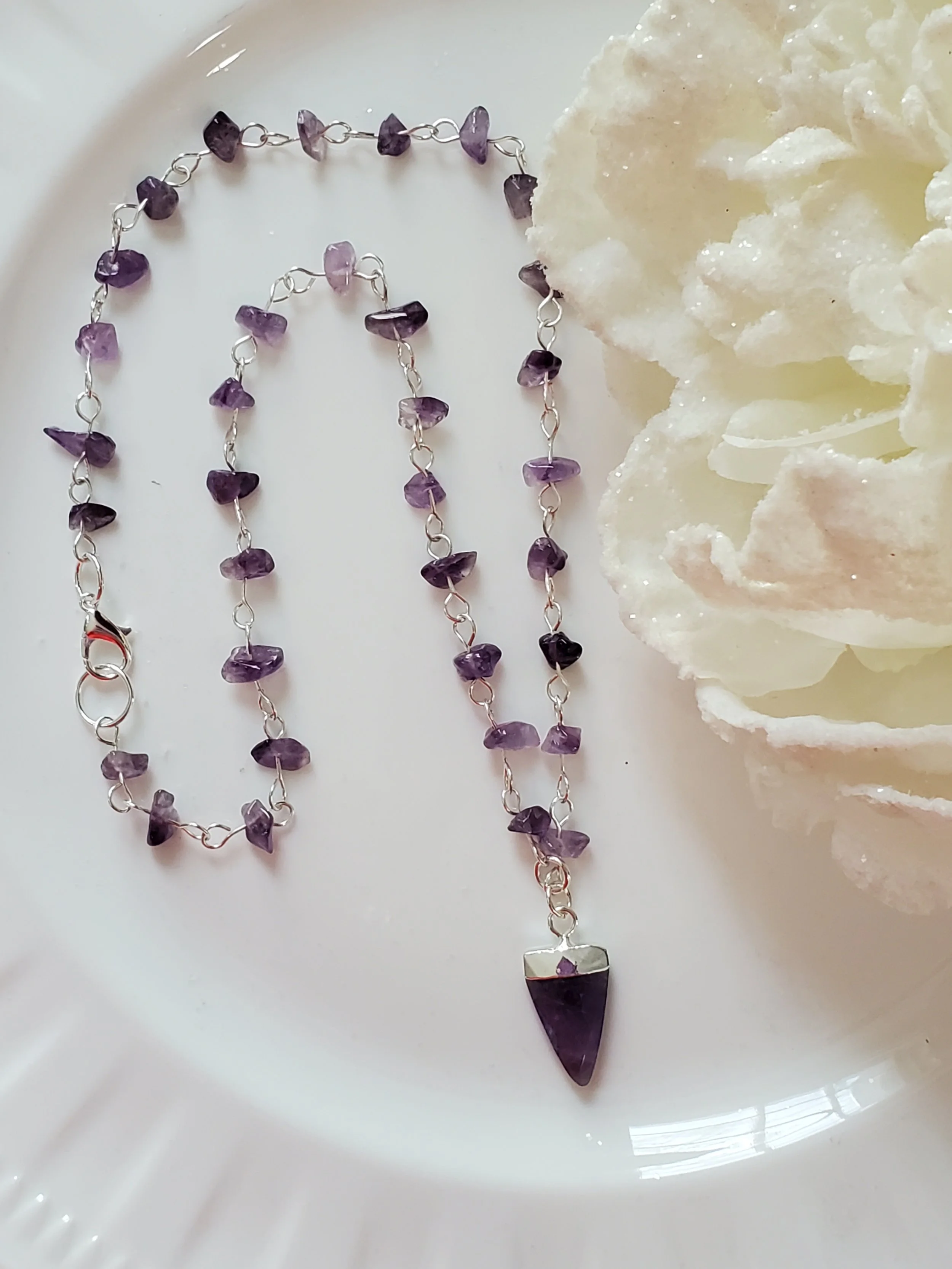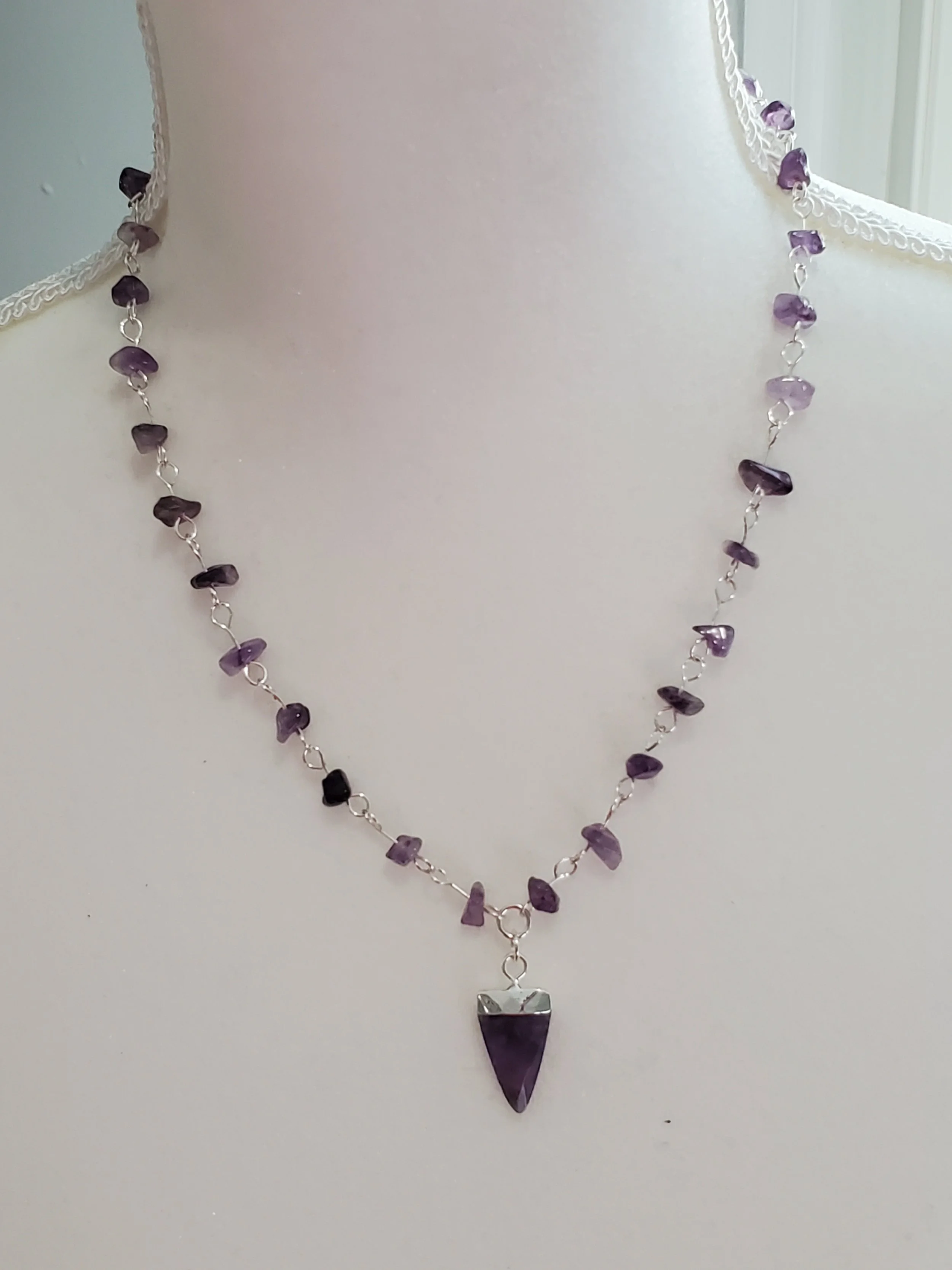 Image 1 of 3 Image 2 of 3 Image 3 of 3 Liza *NEW* $26.00 Genuine amethyst nuggets on silver plated wire with arrow shape genuine amethyst pendant.19"L Add To Cart Added! Genuine amethyst nuggets on silver plated wire with arrow shape genuine amethyst pendant.19"L