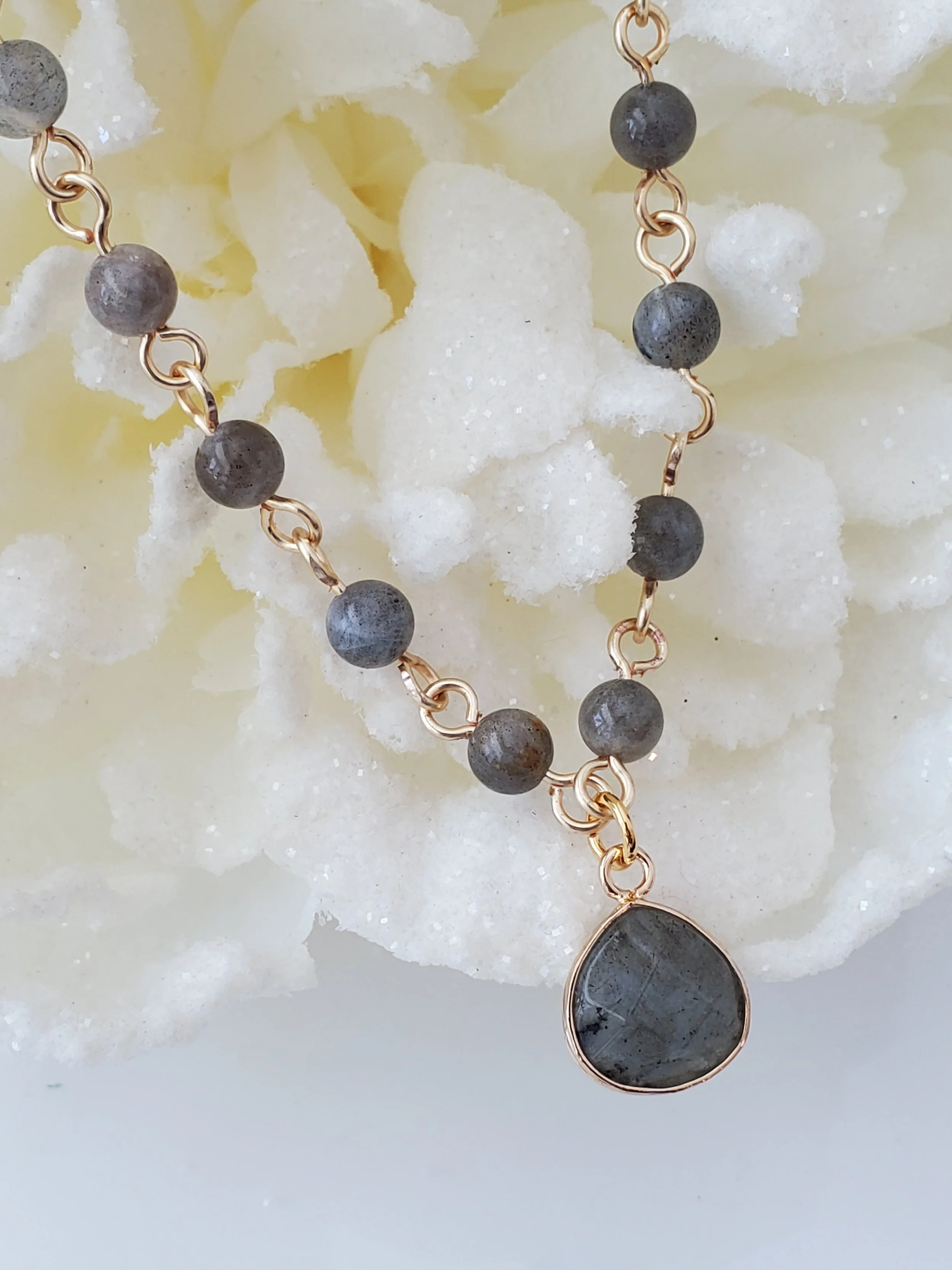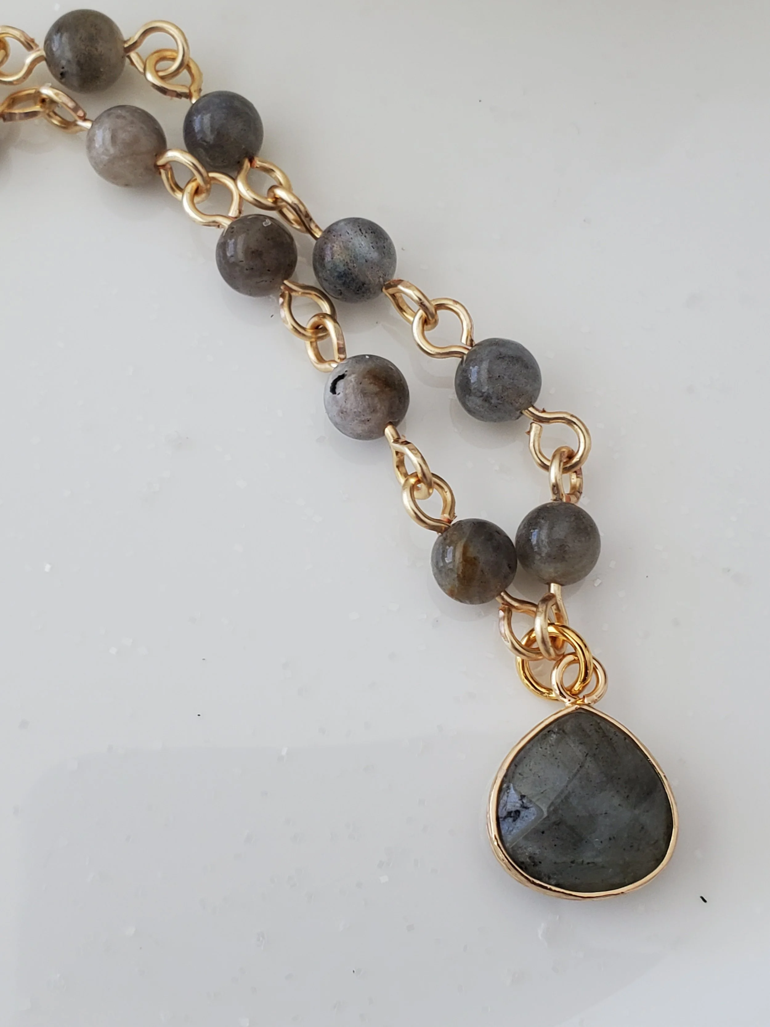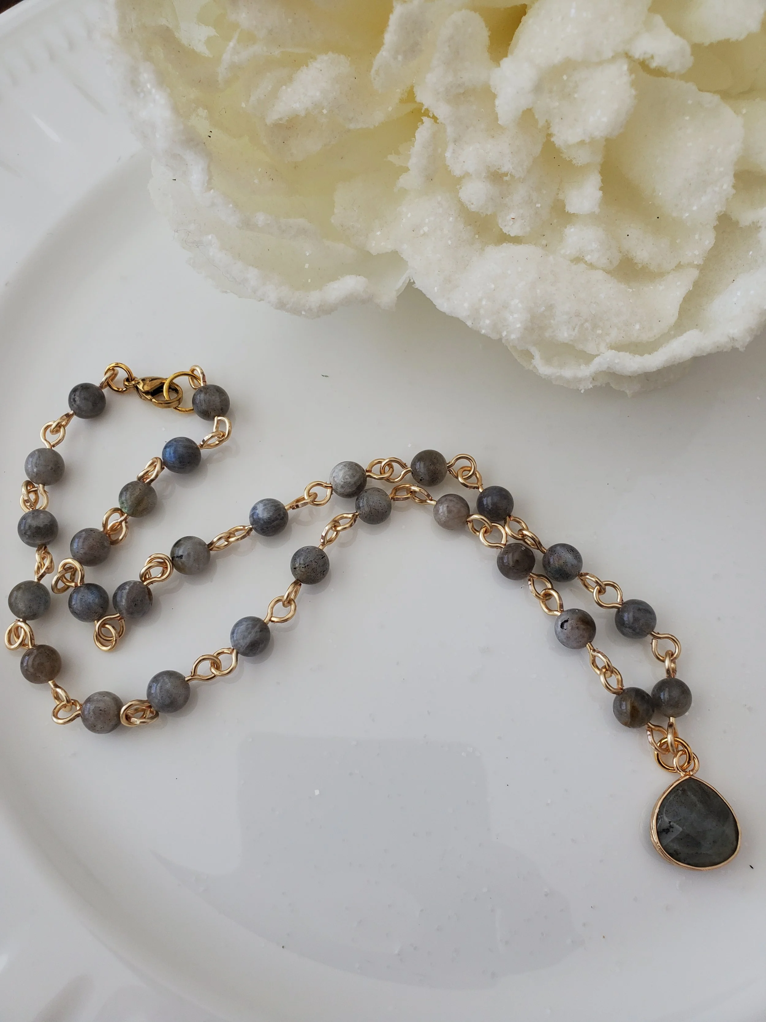Image 1 of 3 Image 2 of 3 Image 3 of 3 Rizzo *NEW* $26.00 4mm labradorite gemstone beads on gold plated wire with labradorite pendant. Perfect “goes with everything” necklace18"L Add To Cart Added! 4mm labradorite gemstone beads on gold plated wire with labradorite pendant. Perfect “goes with everything” necklace18"L