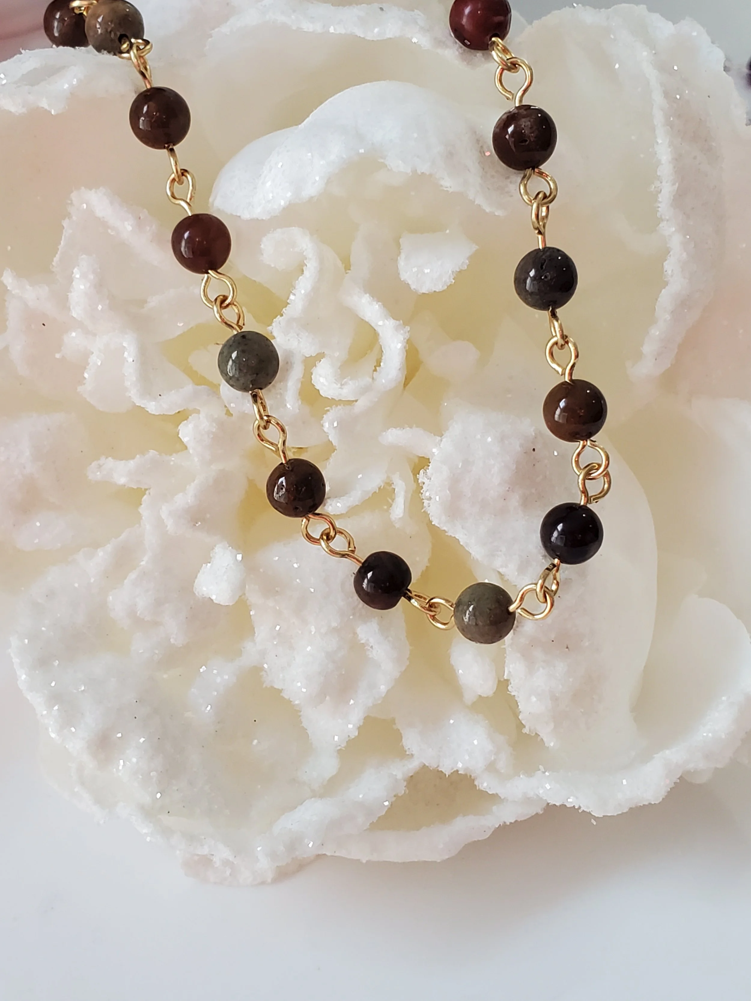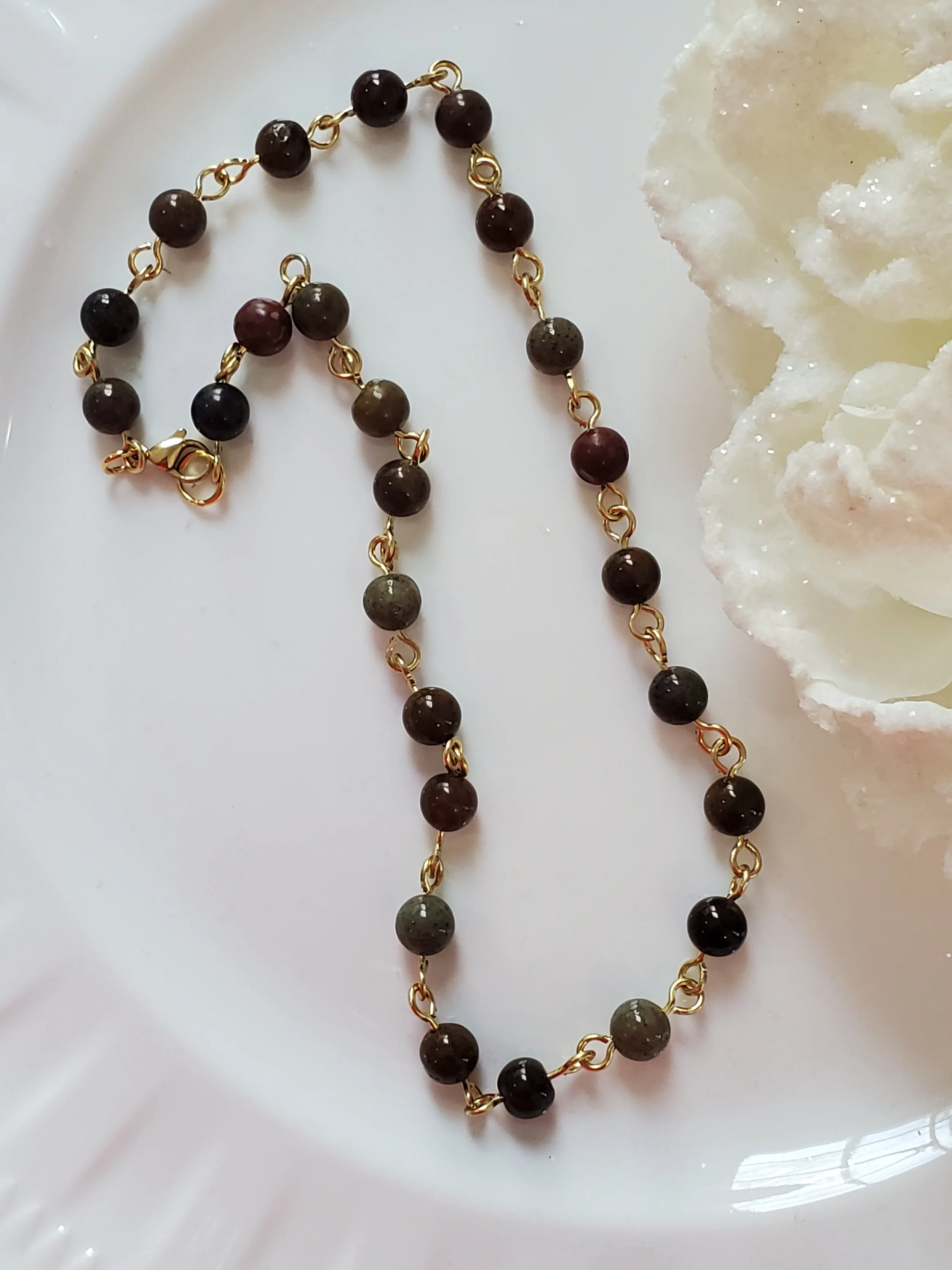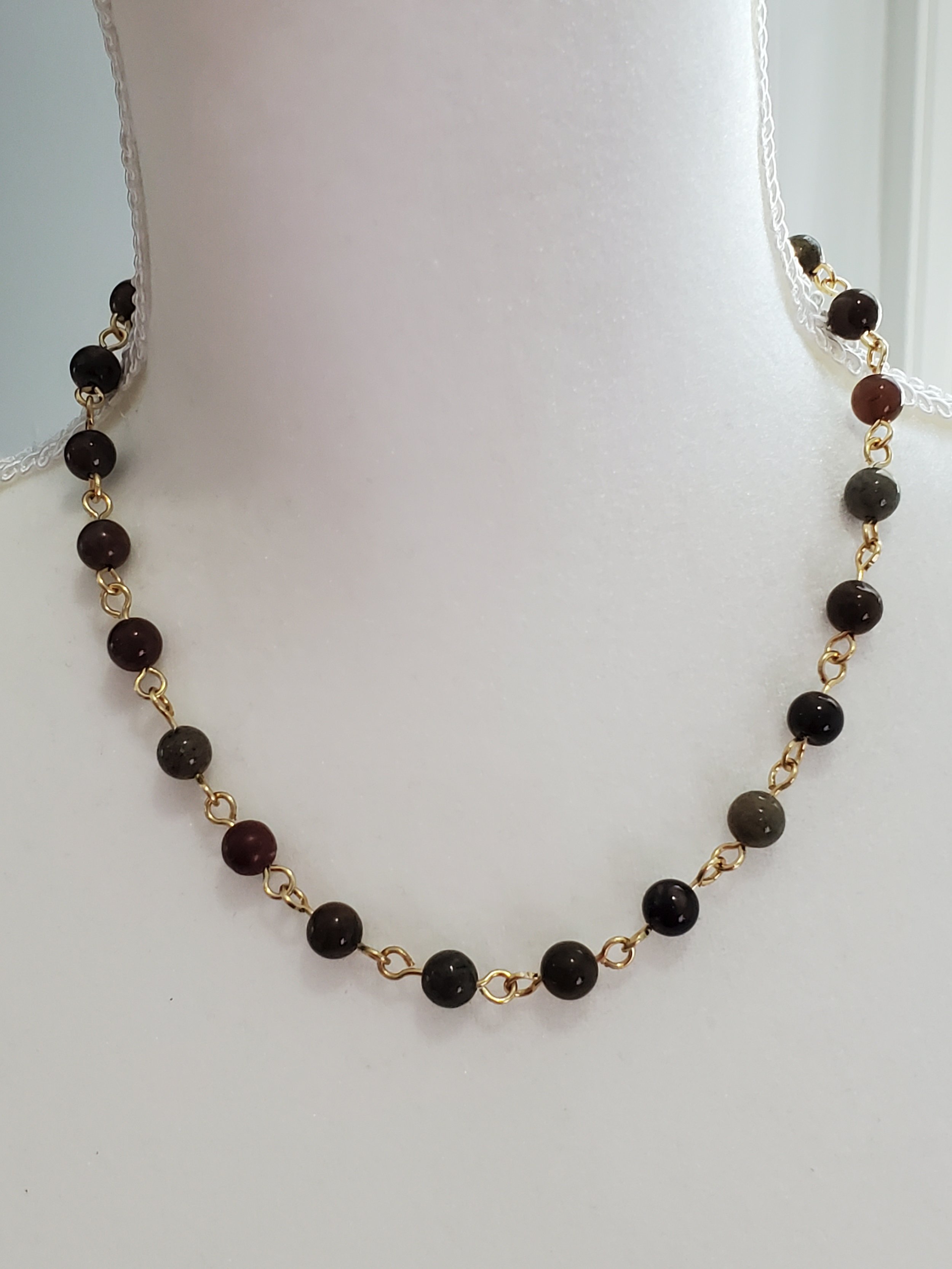 Image 1 of 3 Image 2 of 3 Image 3 of 3 Samantha *NEW* $24.00 Earth tone agate stones on gold plated wire.18"L Add To Cart Added! Earth tone agate stones on gold plated wire.18"L