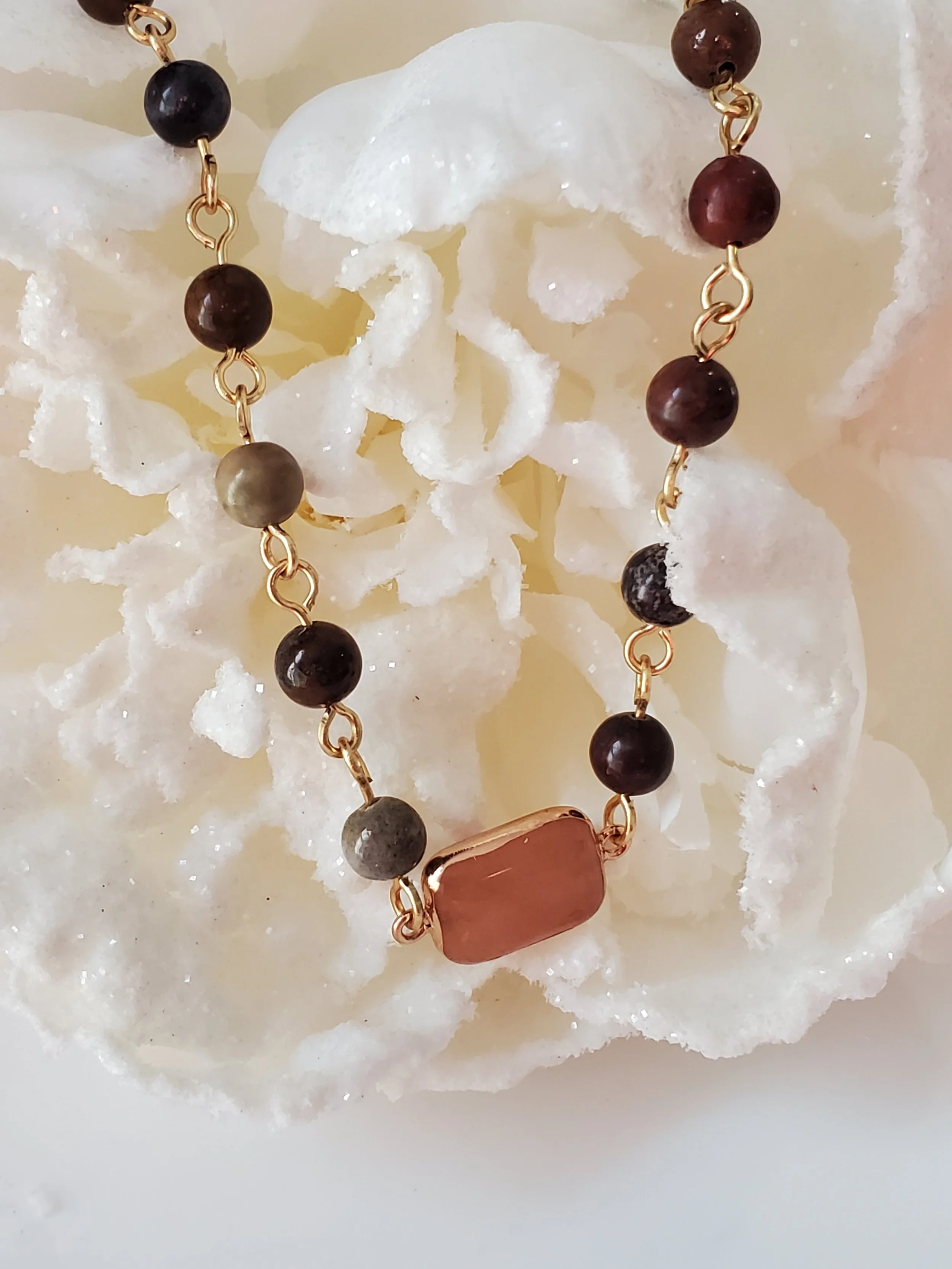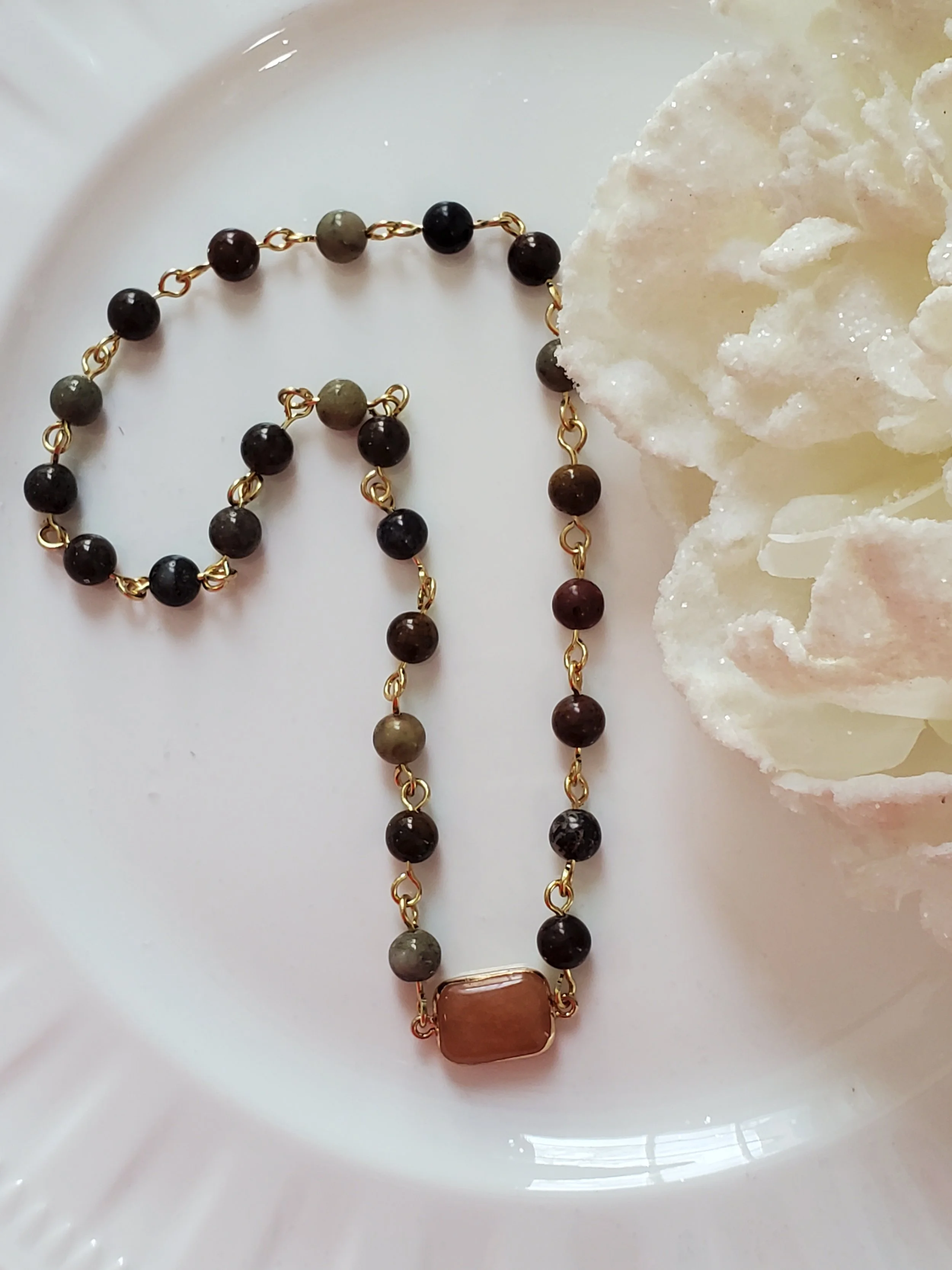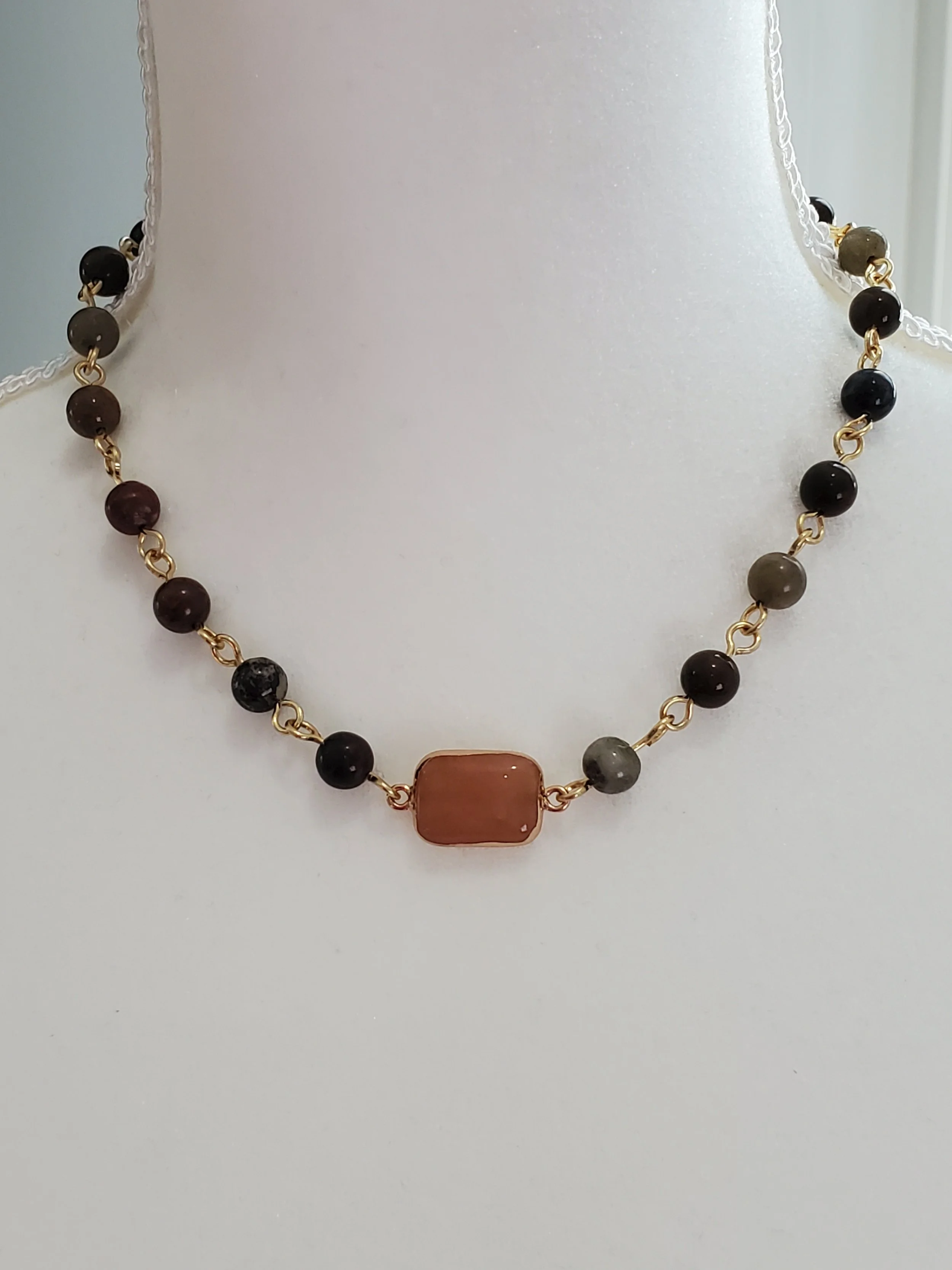 Image 1 of 3 Image 2 of 3 Image 3 of 3 Tara *NEW* $24.00 8mm earth tone hued agate stones on gold plated wire with a beautiful orangish color agate focal.18"L Add To Cart Added! 8mm earth tone hued agate stones on gold plated wire with a beautiful orangish color agate focal.18"L
