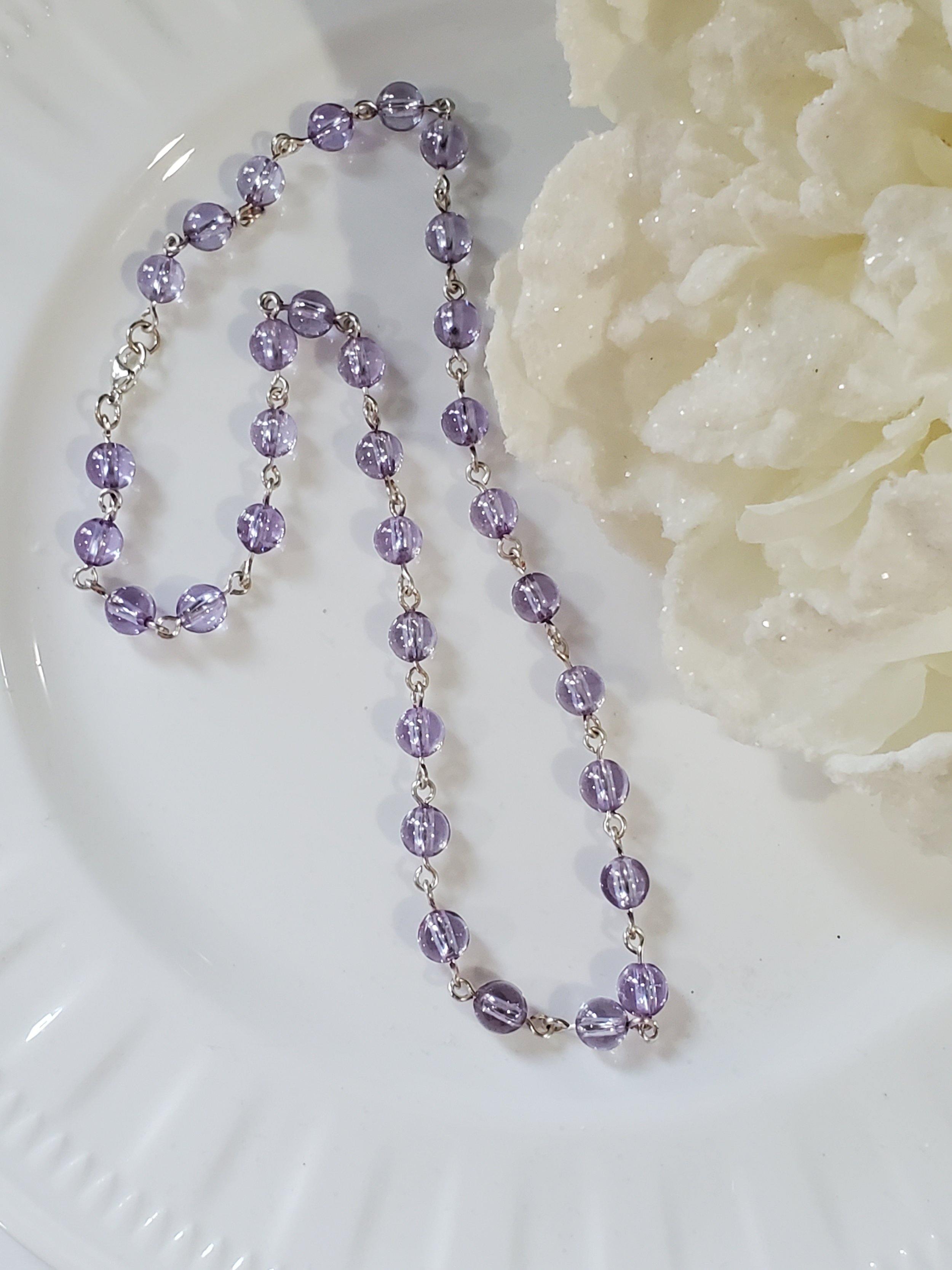 Image 1 of 3 Image 2 of 3 Image 3 of 3 Violet *NEW* $24.00 8mm violet color zirconia glass on silver plated wire. A sweet and oh so pretty piece!18"L Add To Cart Added! 8mm violet color zirconia glass on silver plated wire. A sweet and oh so pretty piece!18"L